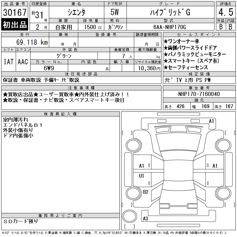 | HYBRID G | 6AA-NHP170G | 1NZ-FXE | FF | CVT | 1496cc | 74ps(54kW)/4800rpm | AИ-92 | 2 424 400 | |