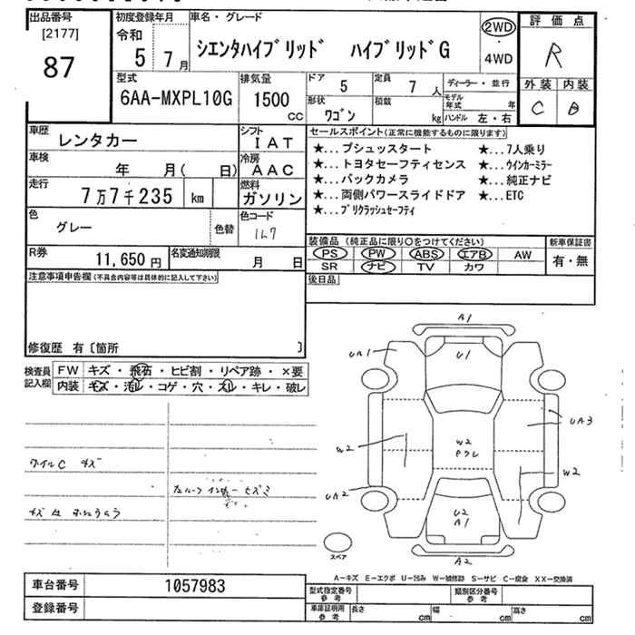 TOYOTA SIENTA 2023 г., лот № 87