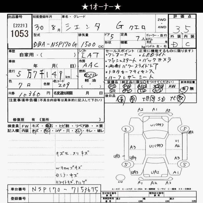 | G | DBA-NSP172G | 2NR-FKE | FF | CVT | 1496cc | 109ps(80kW)/6000rpm | AИ-92 | 2 317 000 | |