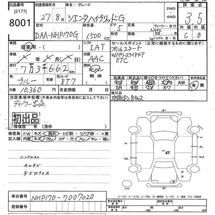 | HYBRID G | DAA-NHP170G | 1NZ-FXE | FF | CVT | 1496cc | 74ps(54kW)/4800rpm | AИ-92 | 2 329 855 | |