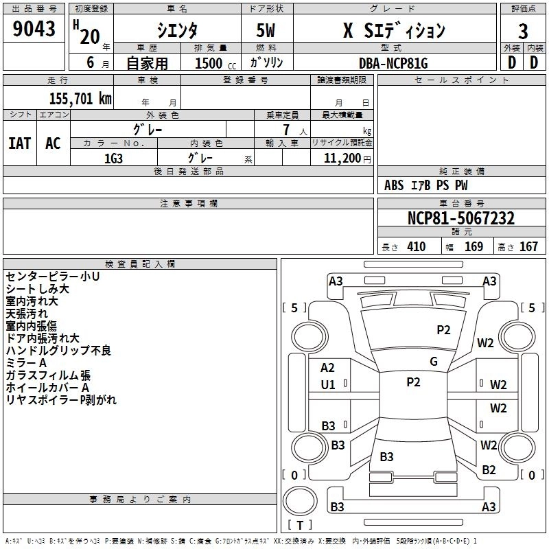 TOYOTA SIENTA 2008 г., лот № 9043
