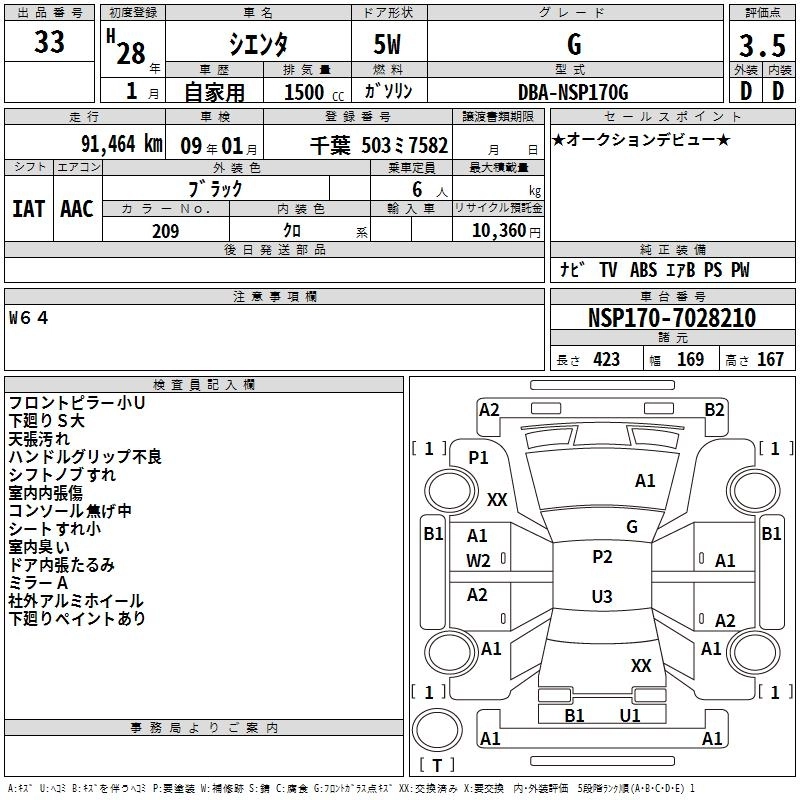 TOYOTA SIENTA 2016 г., лот № 33