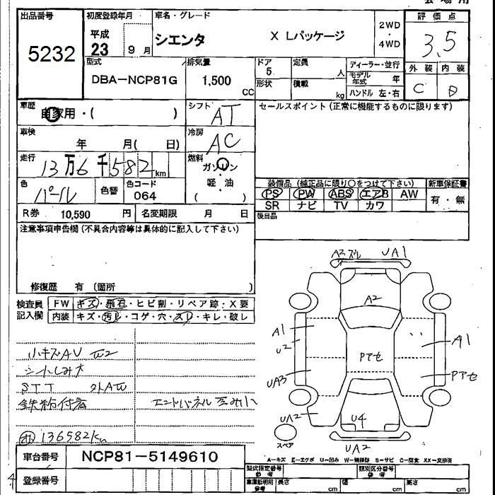 | X | DBA-NCP81G | 1NZ-FE | FF | CVT | 1496cc | 110ps(81kW)/6000rpm | AИ-92 | 1 575 000 |
