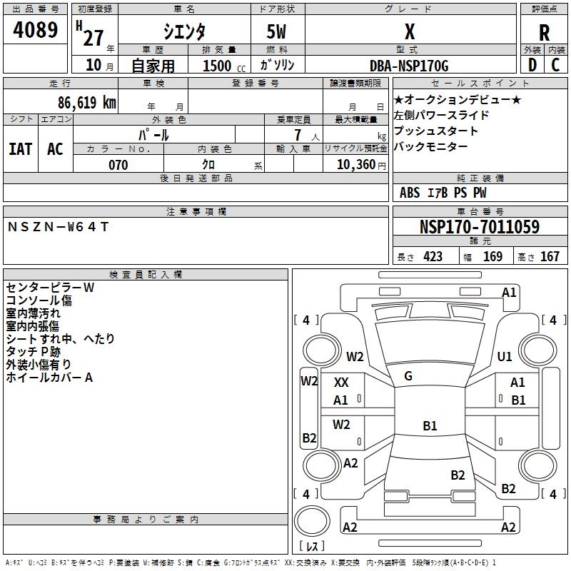 | X | DBA-NCP175G | 1NZ-FE | Full-time 4WD | CVT | 1496cc | 103ps(76kW)/6000rpm | AИ-92 | 1 957 745 | |
