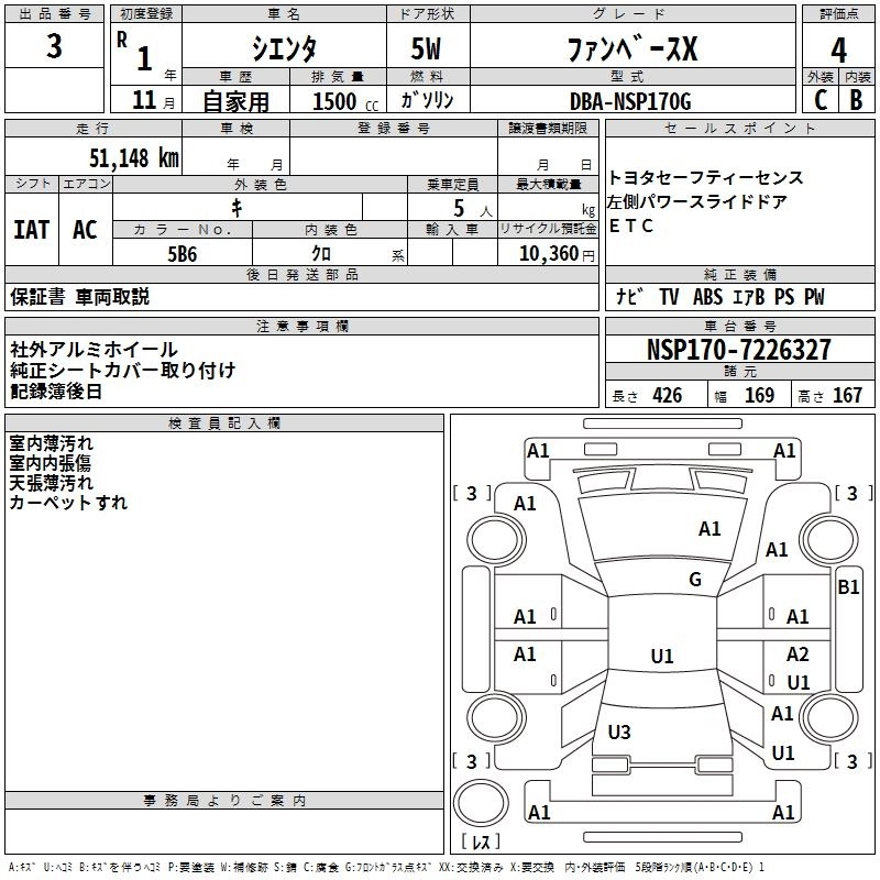 | X | DBA-NCP175G | 1NZ-FE | Full-time 4WD | CVT | 1496cc | 103ps(76kW)/6000rpm | AИ-92 | 1 994 300 | |