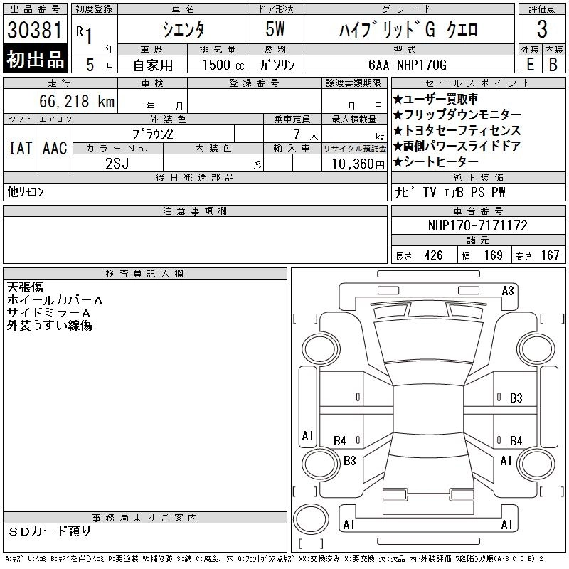 | HYBRID FUNBASE G | 6AA-NHP170G | 1NZ-FXE | FF | CVT | 1496cc | 74ps(54kW)/4800rpm | AИ-92 | 2 383 700 | |
