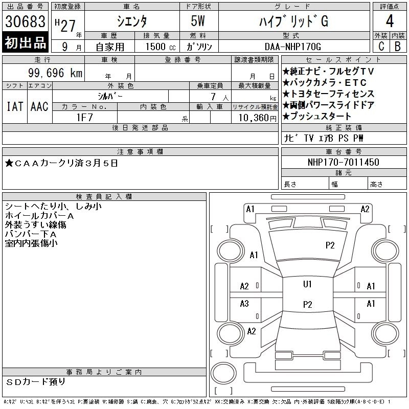 | X V PACKAGE | DBA-NCP175G | 1NZ-FE | Full-time 4WD | CVT | 1496cc | 103ps(76kW)/6000rpm | AИ-92 | 1 831 091 | |