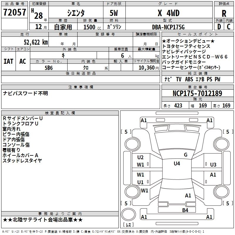 TOYOTA SIENTA 2016 г., лот № 72057