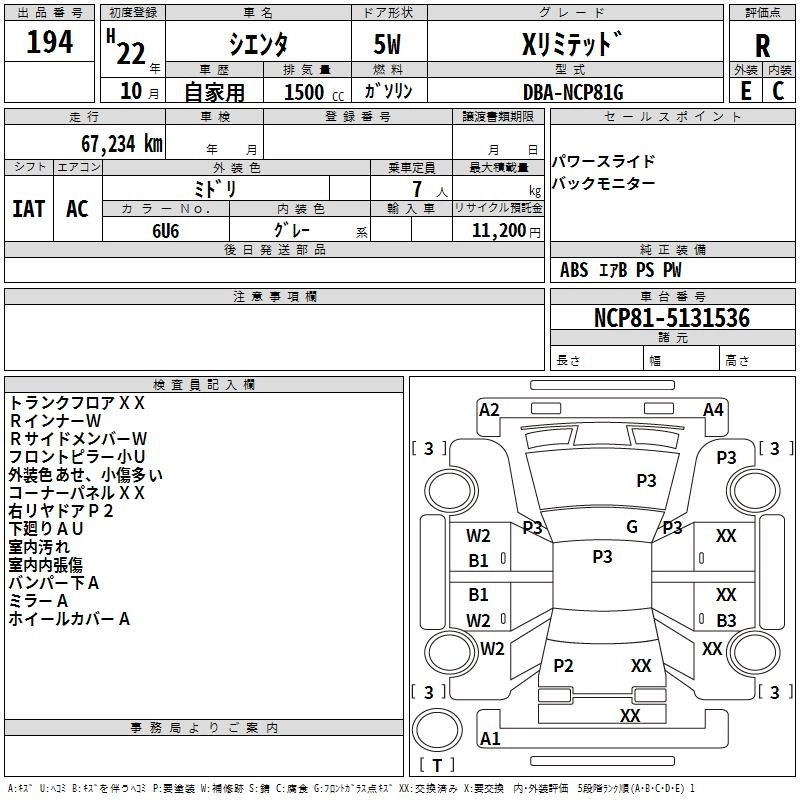 TOYOTA SIENTA 2010 г., лот № 194