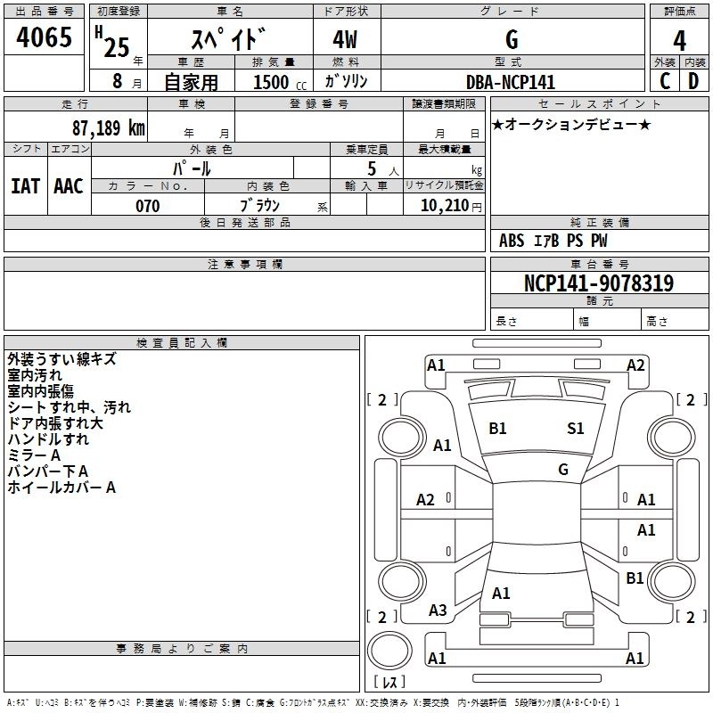 TOYOTA SPADE 2013 г., лот № 4065