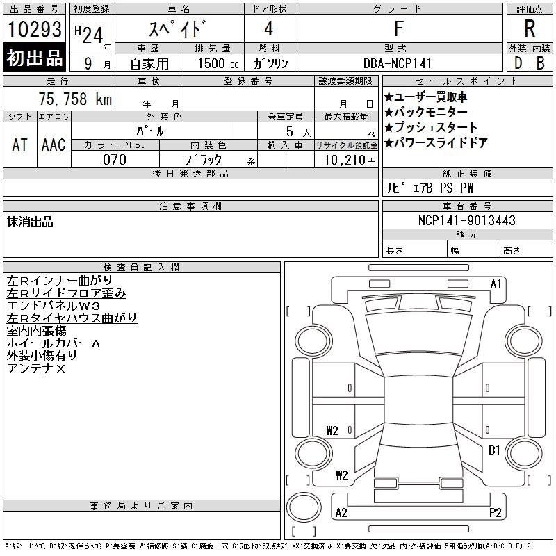 | X | DBA-NCP141 | 1NZ-FE | FF | CVT | 1496cc | 109ps(80kW)/6000rpm | AИ-92 | 1 590 000 | |