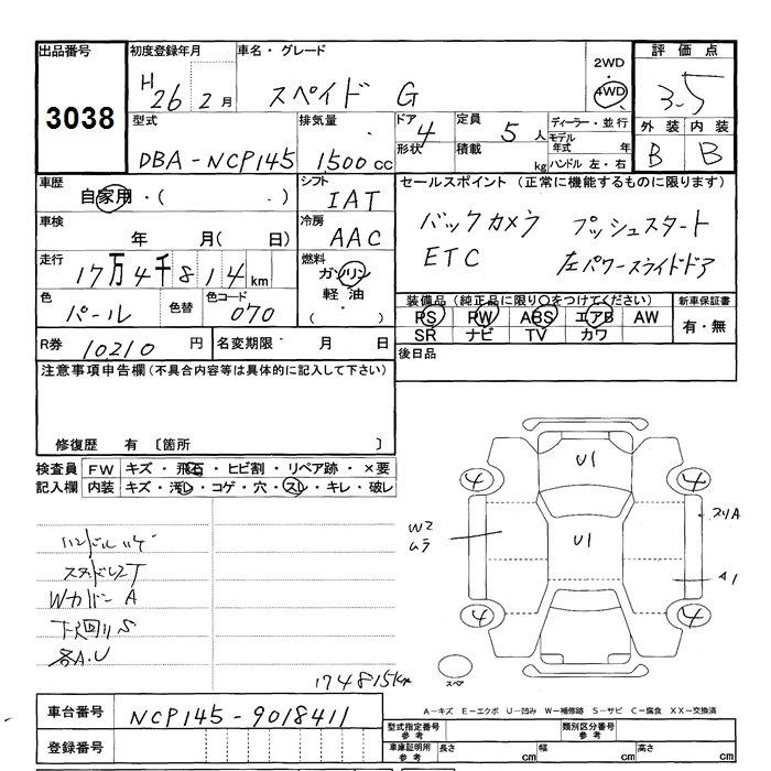 | F JACK | DBA-NCP141 | 1NZ-FE | FF | CVT | 1496cc | 109ps(80kW)/6000rpm | AИ-92 | 1 820 291 | |