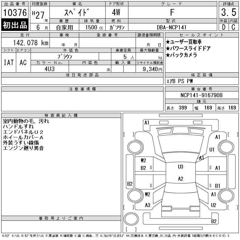 | F | DBA-NCP145 | 1NZ-FE | Full-time 4WD | CVT | 1496cc | 103ps(76kW)/6000rpm | AИ-92 | 1 909 637 | |