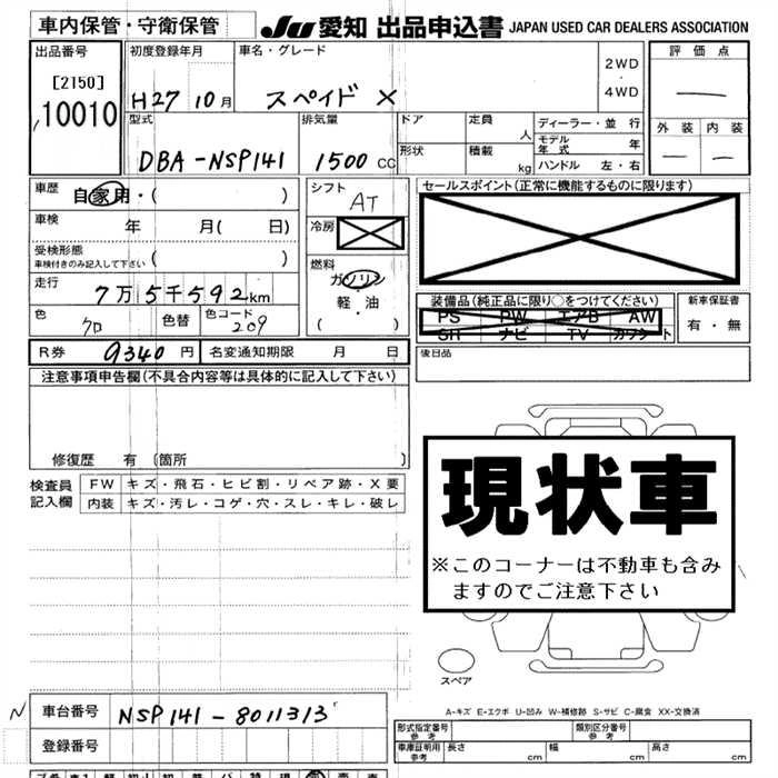 | F QUEEN | DBA-NSP141 | 2NR-FKE | FF | CVT | 1496cc | 109ps(80kW)/6000rpm | AИ-92 | 1 884 109 | |