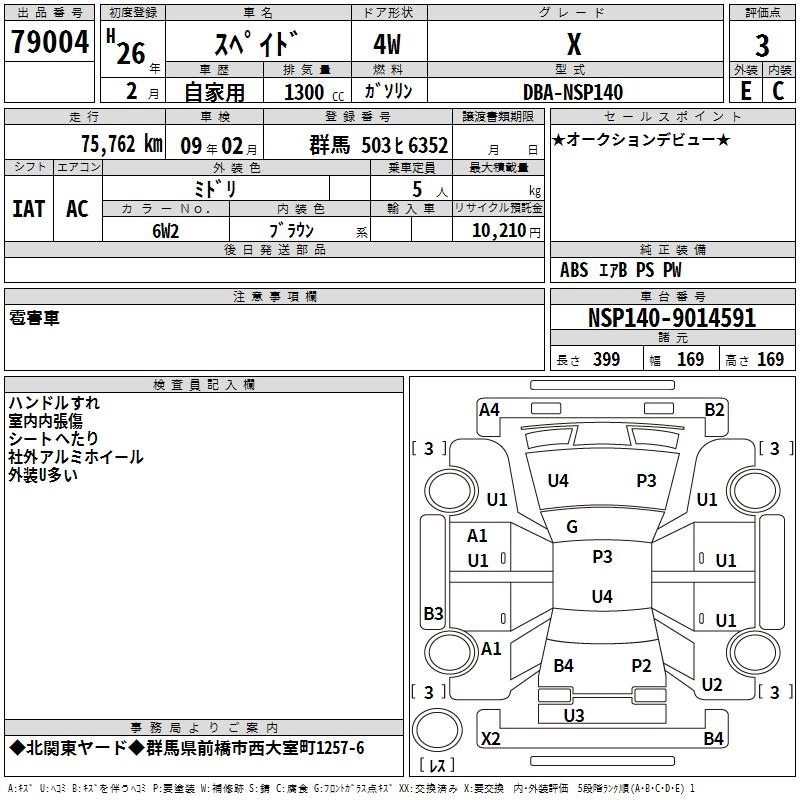 | F JACK | DBA-NCP141 | 1NZ-FE | FF | CVT | 1496cc | 109ps(80kW)/6000rpm | AИ-92 | 1 820 291 | |