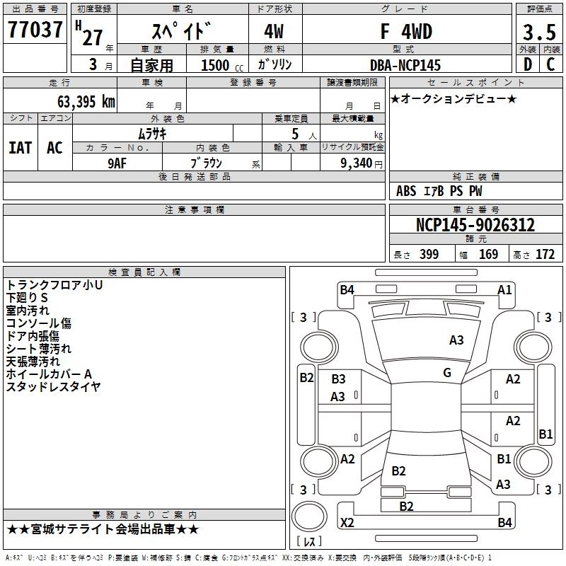 | F | DBA-NCP145 | 1NZ-FE | Full-time 4WD | CVT | 1496cc | 103ps(76kW)/6000rpm | AИ-92 | 1 909 637 | |
