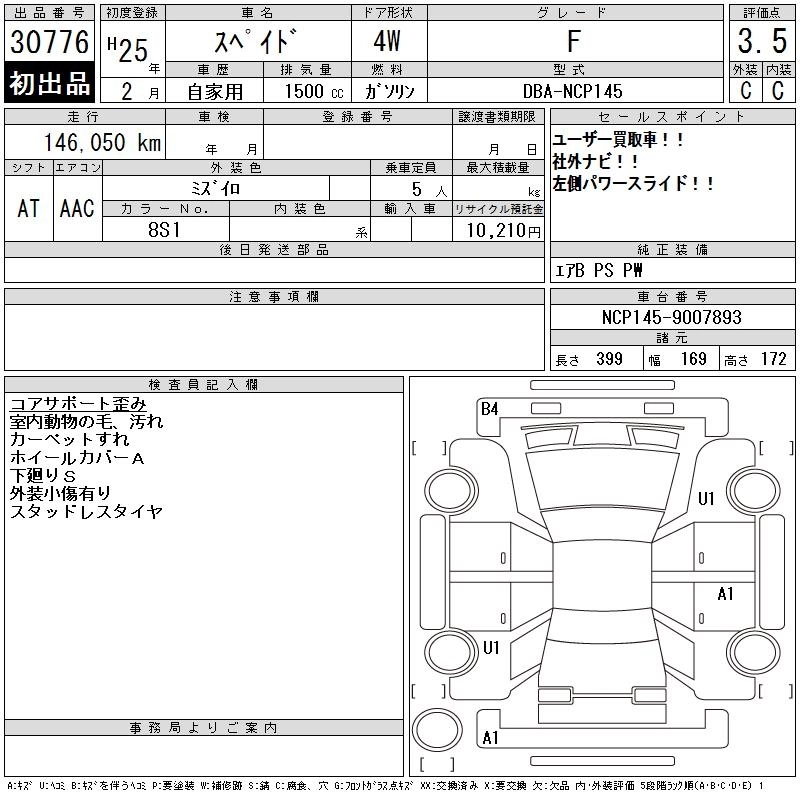 TOYOTA SPADE 2013 г., лот № 30776