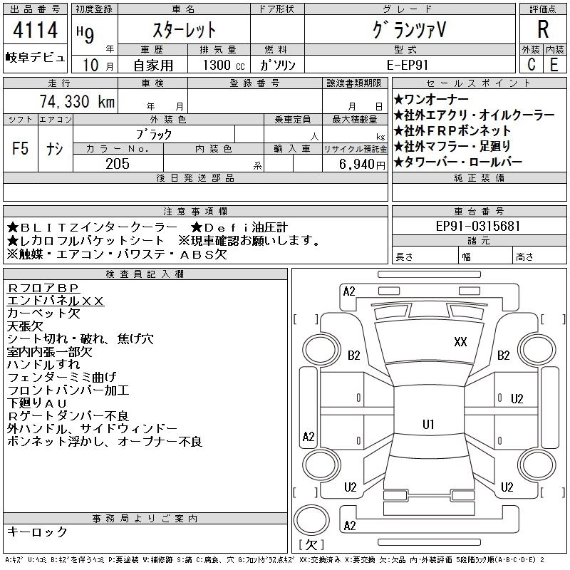 | GLANZA V EXCERENT PACKAGE | E-EP91 | 4E-FTE | FF | 5MT | 1331cc | 135ps(99kW)/6400rpm | AИ-92 | 1 500 000 | |