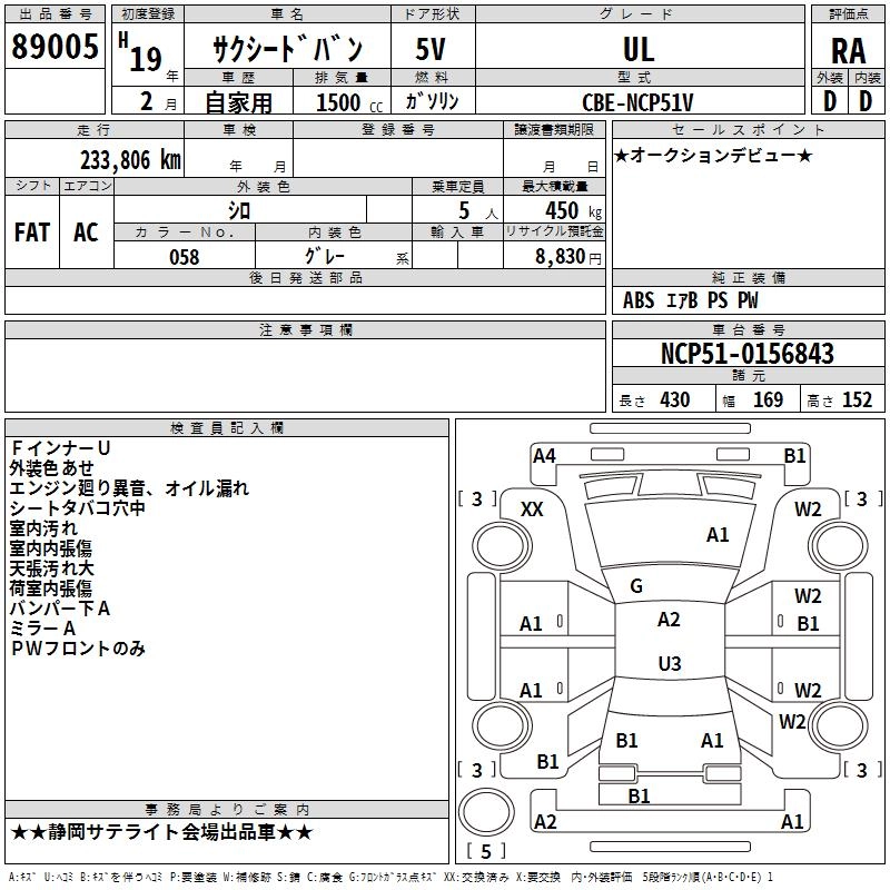 Год выпуска2007 Пробег 234 000 км КузовNCP51V КомплектацияUL