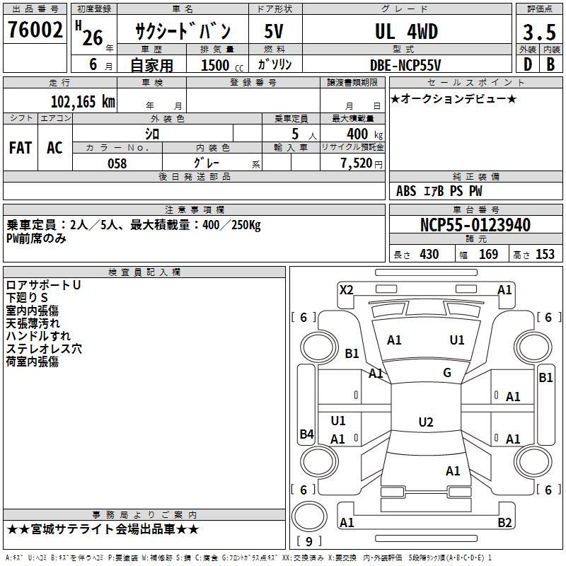 TOYOTA SUCCEED VAN 2014 г., лот № 76002