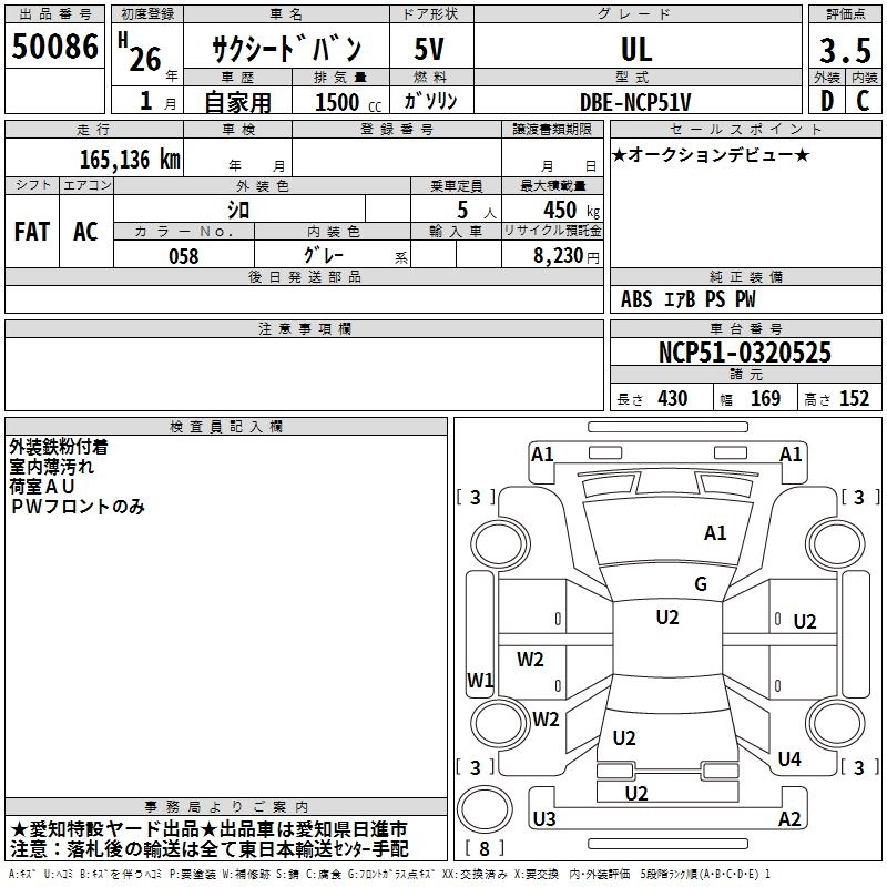 TOYOTA SUCCEED VAN 2014 г., лот № 50086