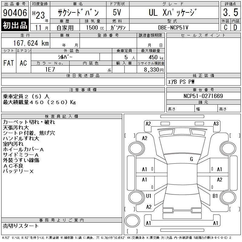 Год выпуска2011 Пробег 168 000 км КузовNCP51V КомплектацияUL X PACKAGE