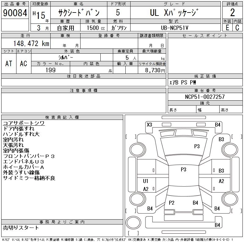 Год выпуска2003 Пробег 148 000 км КузовNCP51V КомплектацияUL X PACKAGE