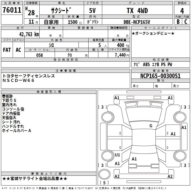 TOYOTA SUCCEED WAGON 2016 г., лот № 76011