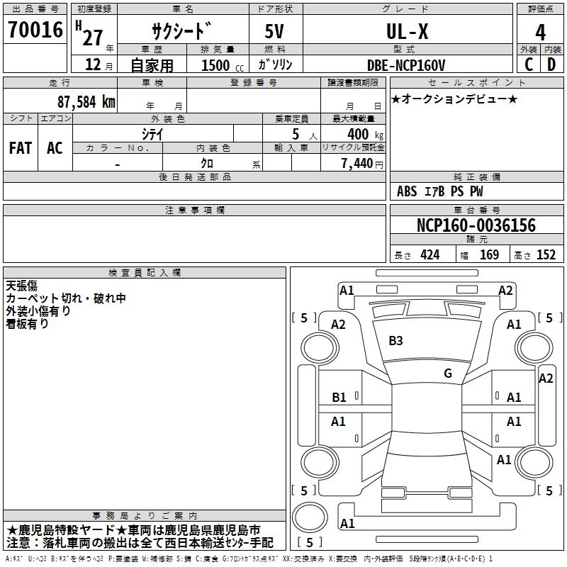 TOYOTA SUCCEED WAGON 2015 г., лот № 70016