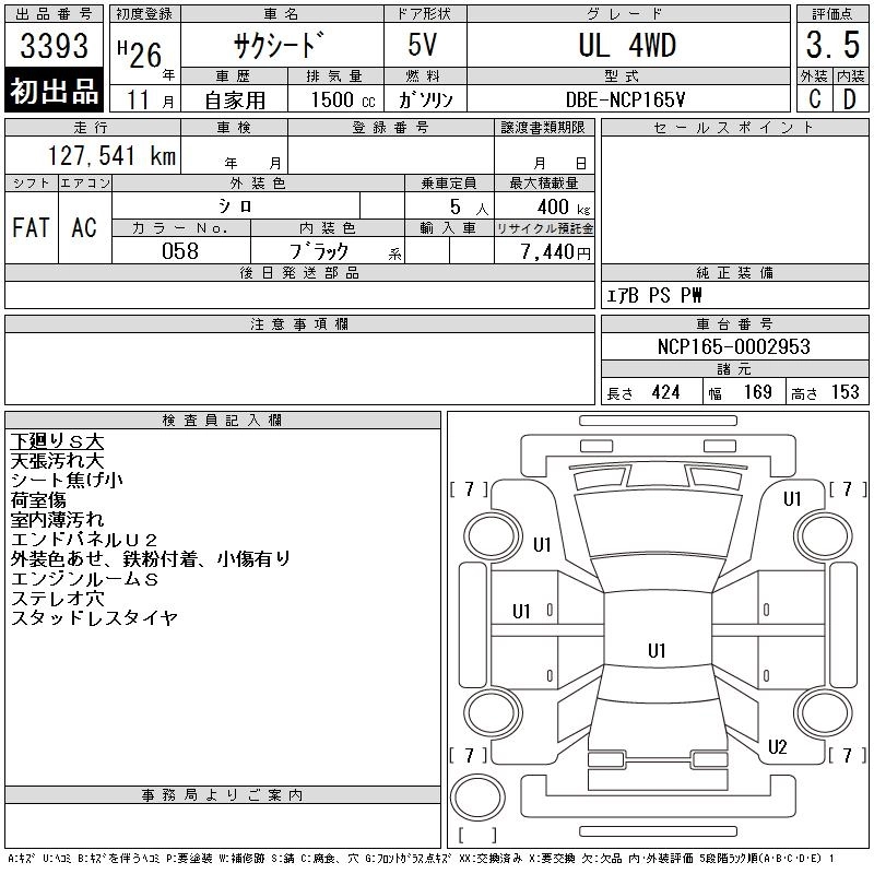 TOYOTA SUCCEED WAGON 2014 г., лот № 3393