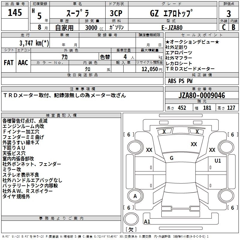 | SZ | E-JZA80 | 2JZ-GE | FR | 5MT | 2997cc | 225ps(165kW)/6000rpm | AИ-95 | 2 900 000 |