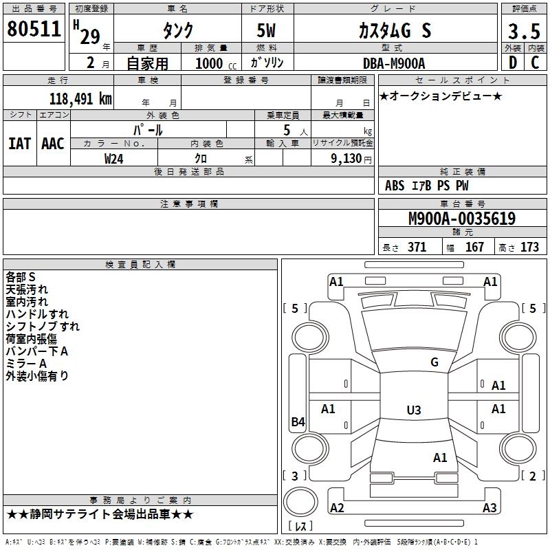 TOYOTA TANK 2017 г., лот № 80511