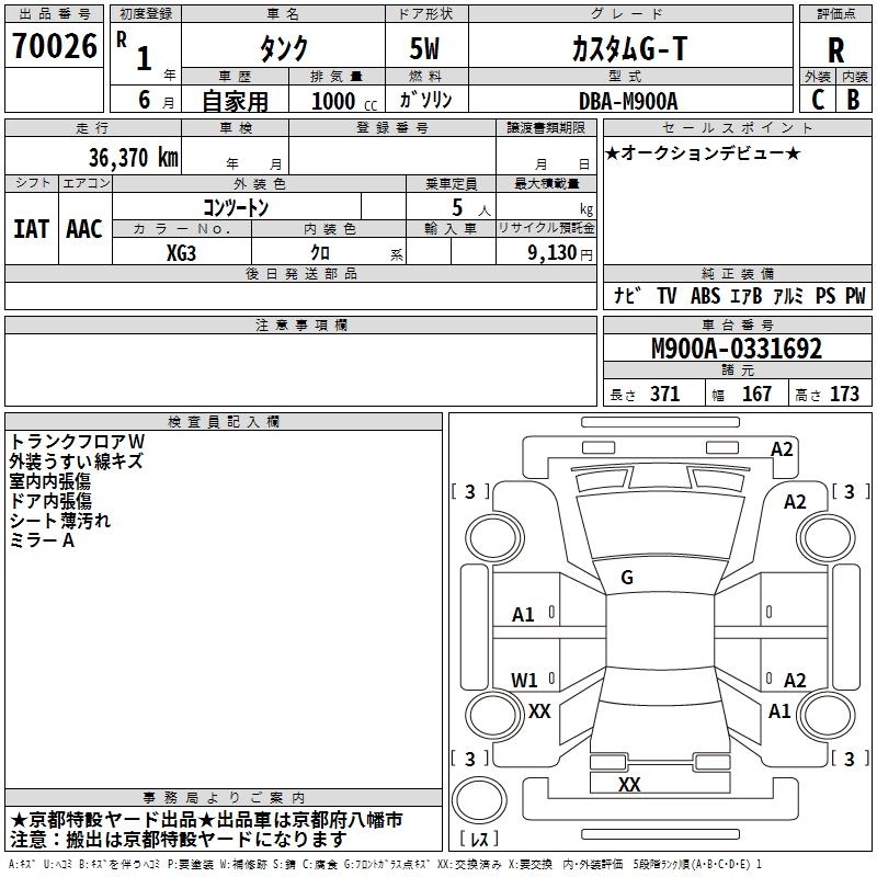 | CUSTOM G-T | DBA-M900A | 1KR-VET | FF | CVT | 996cc | 98ps(72kW)/6000rpm | AИ-92 | 2 002 000 | |