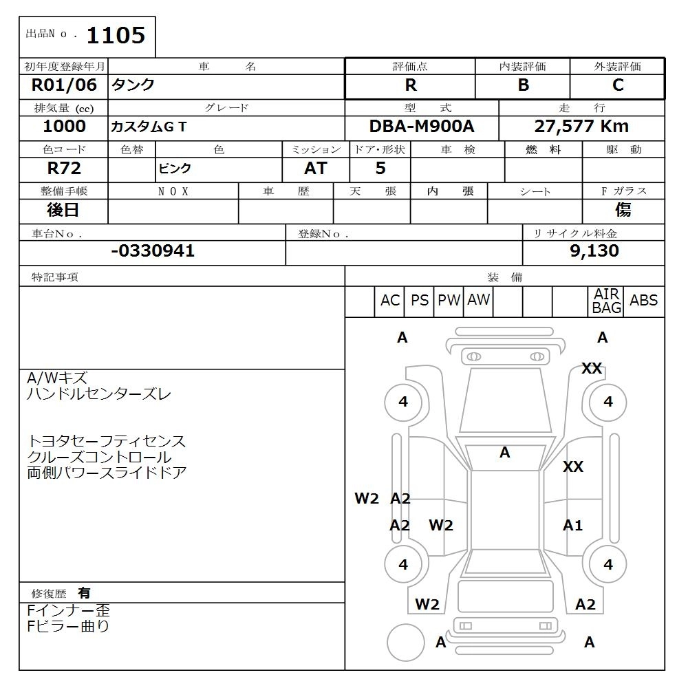 | X S | DBA-M910A | 1KR-FE | Full-time 4WD | CVT | 996cc | 69ps(51kW)/6000rpm | AИ-92 | 1 732 500 | |