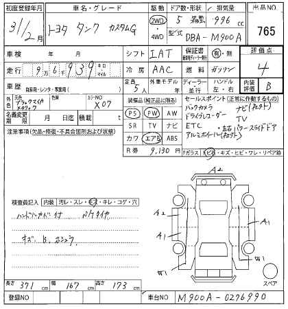 G DBA-M910A 1KR-FE Full-time 4WD CVT 996cc 69ps(51kW)/6000rpm AИ-92 1 892 000