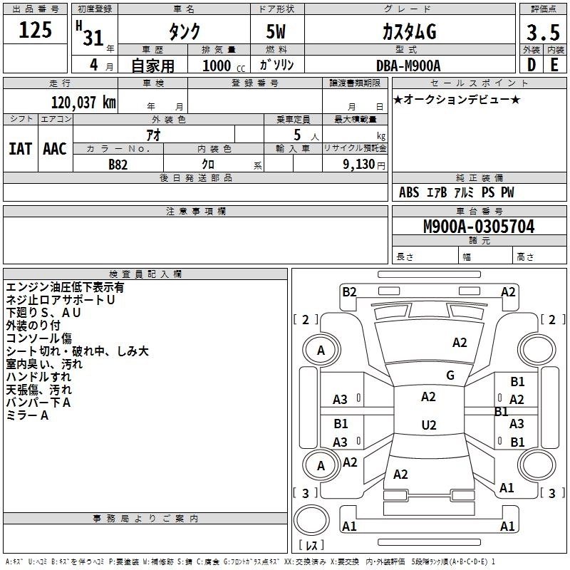 Год выпуска2019 Пробег 120 000 км КузовM900A Комплектация CUSTOM G