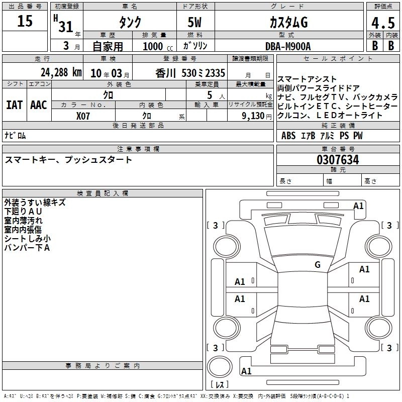 G DBA-M900A 1KR-FE FF CVT 996cc 69ps(51kW)/6000rpm AИ-92 1 716 000