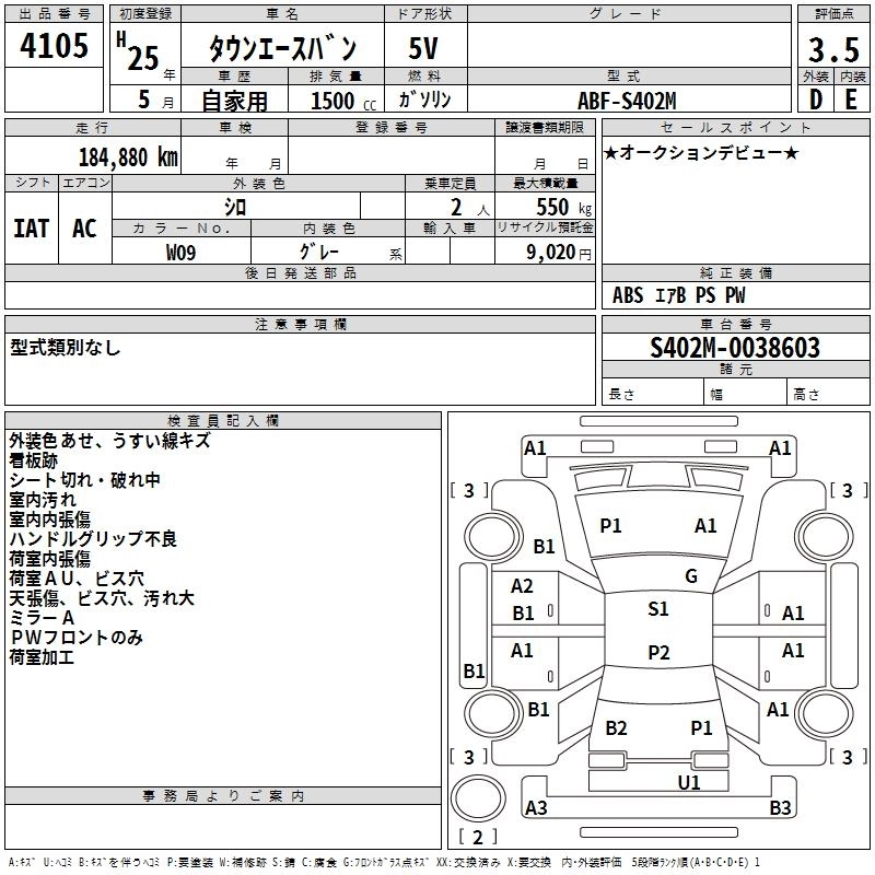 TOYOTA TOWN ACE VAN 2013 г., лот № 4105