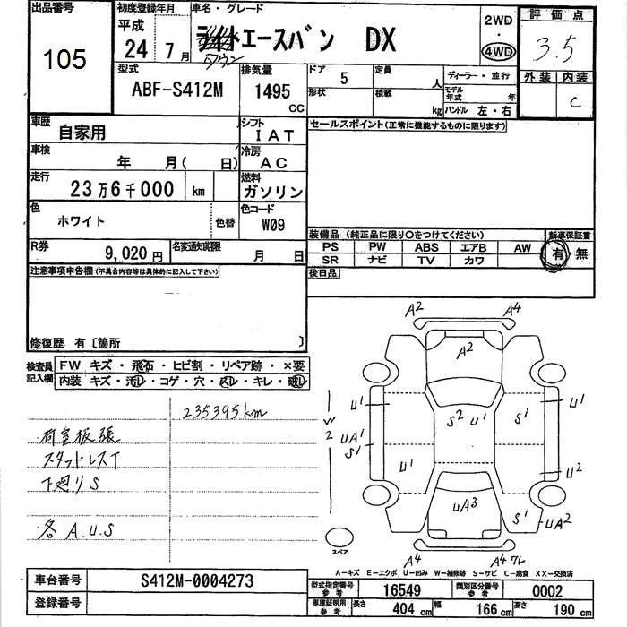 Год выпуска2012 Пробег 235 000 км КузовS412M Комплектация4WD DX