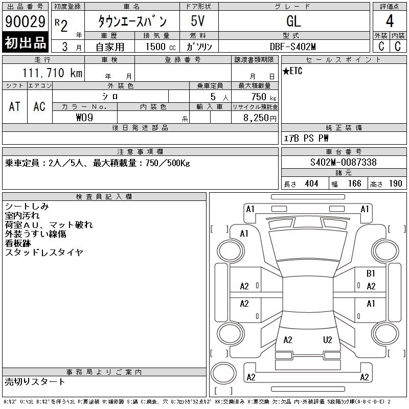 TOYOTA TOWN ACE VAN 2020 г., лот № 90029