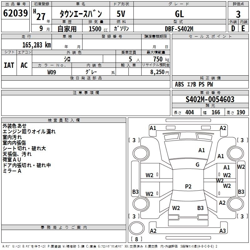 TOYOTA TOWN ACE VAN 2015 г., лот № 62039