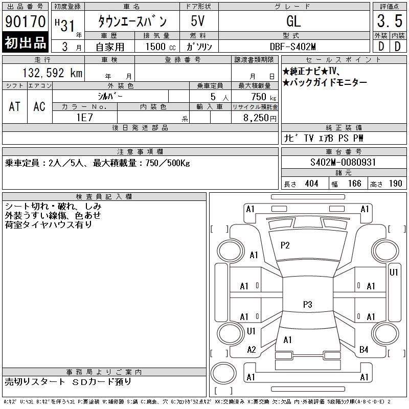 TOYOTA TOWN ACE VAN 2019 г., лот № 90170