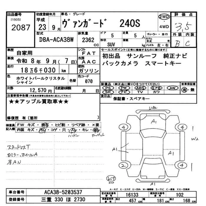Год выпуска2011 Пробег 186 000 км КузовACA38W Комплектация240S