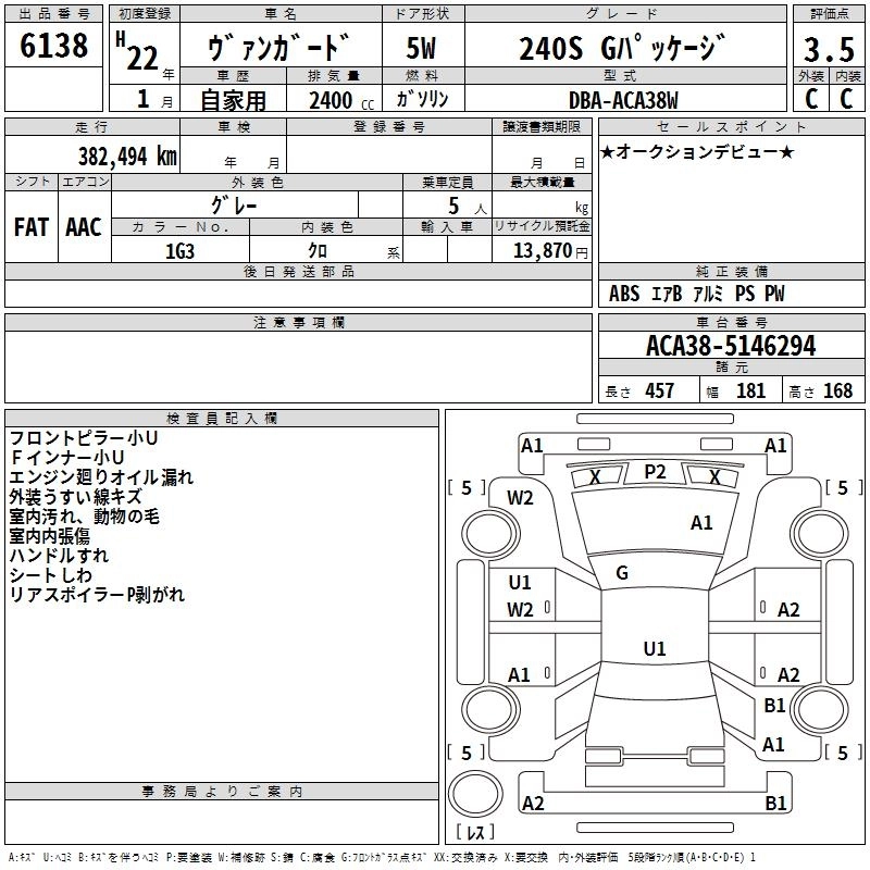 | 240S G PACKAGE | DBA-ACA38W | 2AZ-FE | FF | CVT | 2362cc | 170ps(125kW)/6000rpm | AИ-92 | 2 770 000 | |