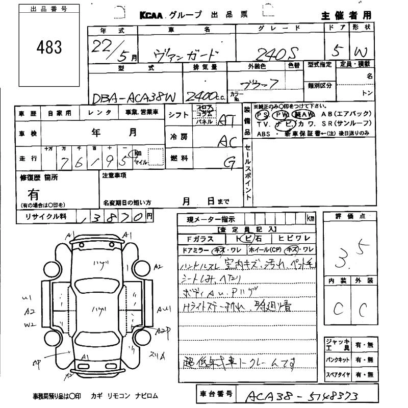 | 240S | DBA-ACA38W | 2AZ-FE | FF | CVT | 2362cc | 170ps(125kW)/6000rpm | AИ-92 | 2 420 000 |