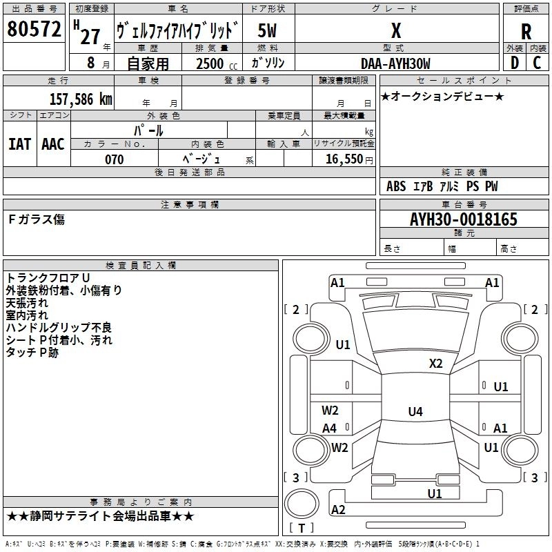 TOYOTA VELLFIRE HYBRID 2015 г., лот № 80572