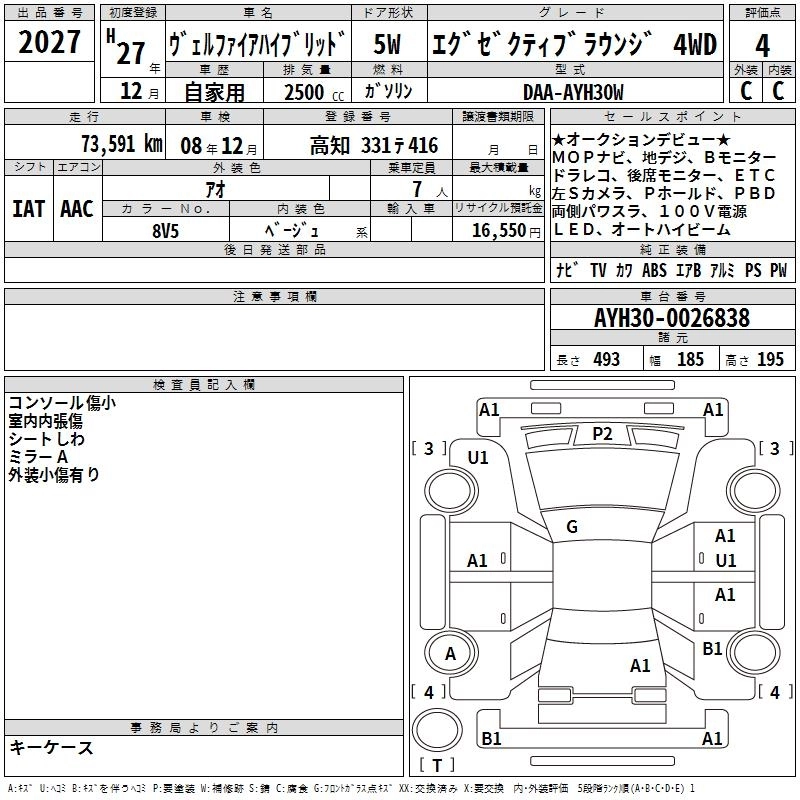 EXECUTIVE LOUNGE DAA-AYH30W 2AR-FXE Full-time 4WD CVT 2493cc 152ps(112kW)/5700rpm AИ-92 7 036 691