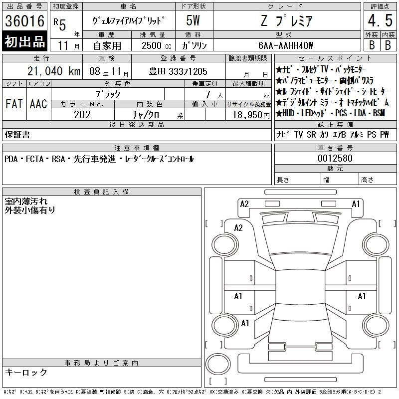 TOYOTA VELLFIRE HYBRID 2023 г., лот № 36016