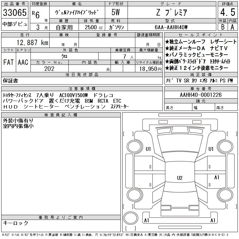 TOYOTA VELLFIRE HYBRID 2024 г., лот № 33065