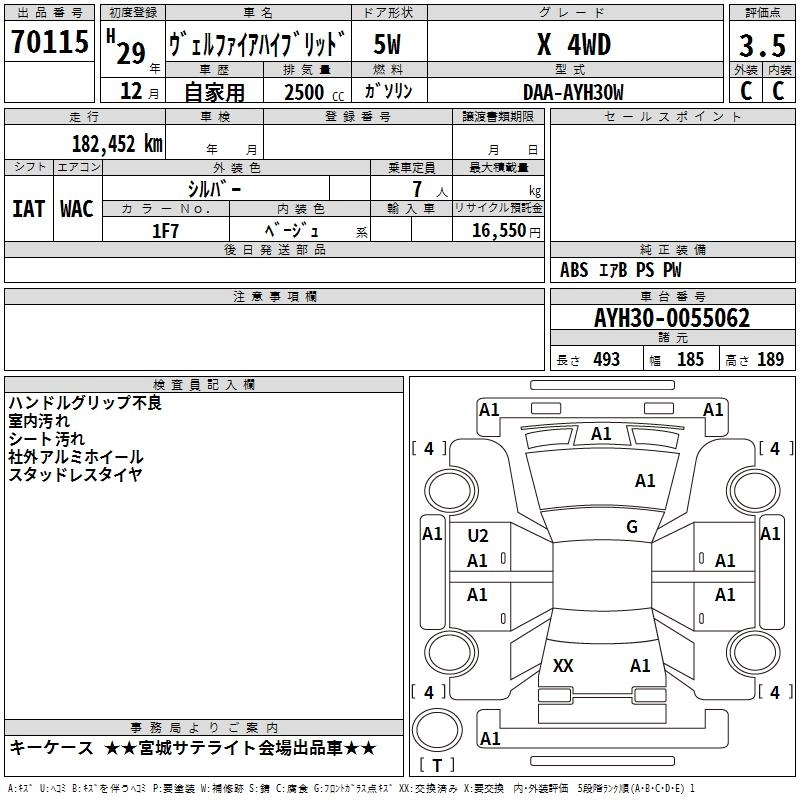 TOYOTA VELLFIRE HYBRID 2017 г., лот № 70115